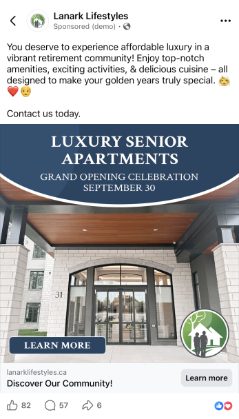 The Problem: Lanark needed to achieve full occupancy for Phase 2 of their luxury senior apartments. The challenge was finding a way to efficiently attract highly qualified buyers without wasting their ad budget.